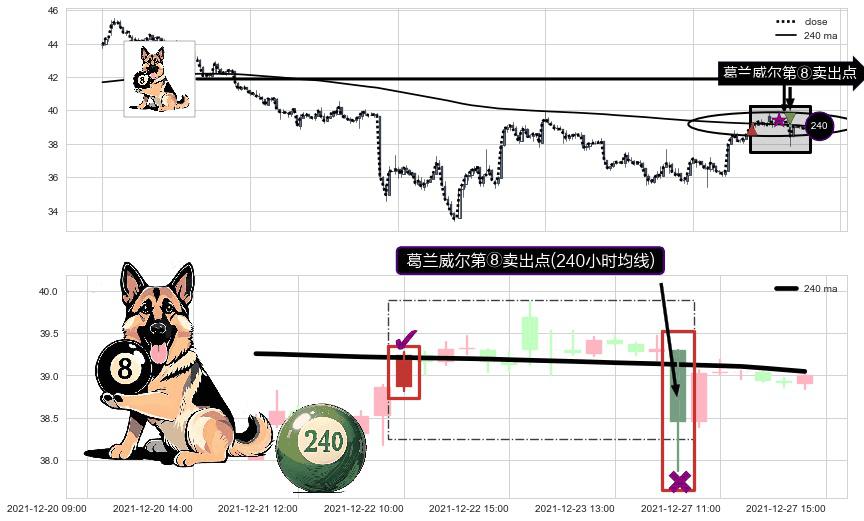 形态多维评估: ⚀ 2021-12-27 09:00:00-小时显现 葛兰威尔均线 240小时均线 第⑧卖出点 下降趋势的中继信号,后市看跌,卖出信号