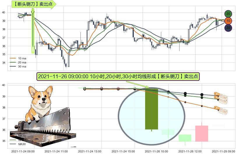 形态多维评估: ⚀ 2021-11-26 09:00:00小时显现 10小时-20小时-30小时均线 【断头铡刀】卖出点 看空信号,后市看跌,卖出