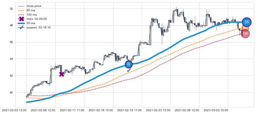 上涨趋势02-03 13:00-03-04 12:00,均线55确认关键支撑1处