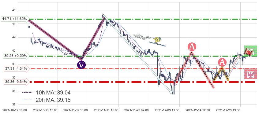 ♘ 阻力价格位39.23,可信任强度67.49%,距离最后交易2021-12-27 15:00形成的收盘价格39.00相差 +0.59%