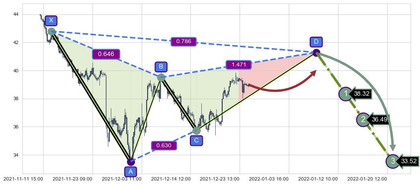 ➣ D点拟合预测价格41.29,距离最后交易收盘价格39.00相差 +5.86%