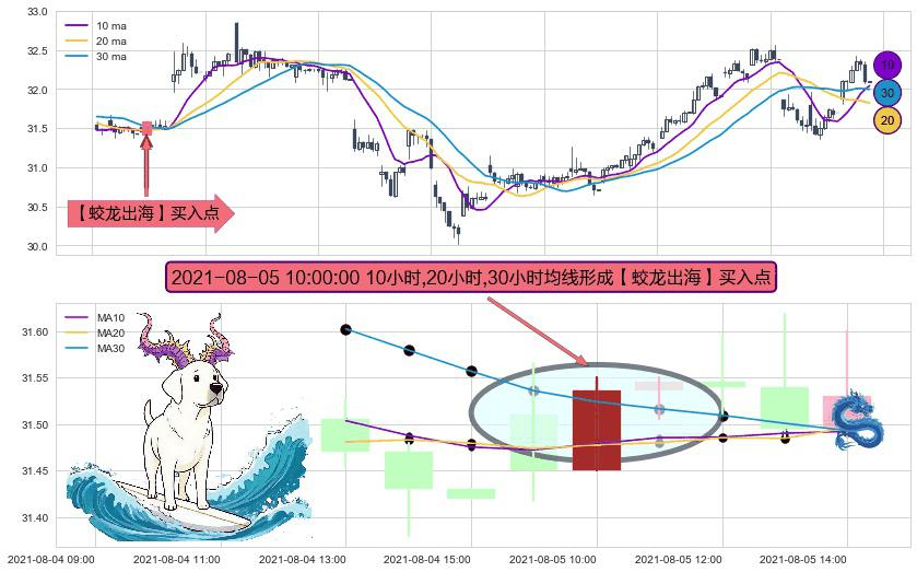 ⚀ 2021-08-05 10:00:00小时显现 10小时-20小时-30小时均线 【蛟龙出海】买入点 看多信号,后市看涨,买入