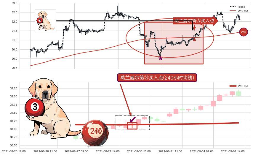 ⚀ 2021-08-30 10:00:00-小时显现 葛兰威尔均线 240小时均线 第③买入点 上升趋势的中继信号,后市看涨,买进信号