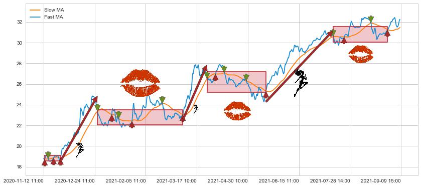 07-14 13:00至08-30 13:00 慢线与快线多次接触,存在上下穿越,有缠绕