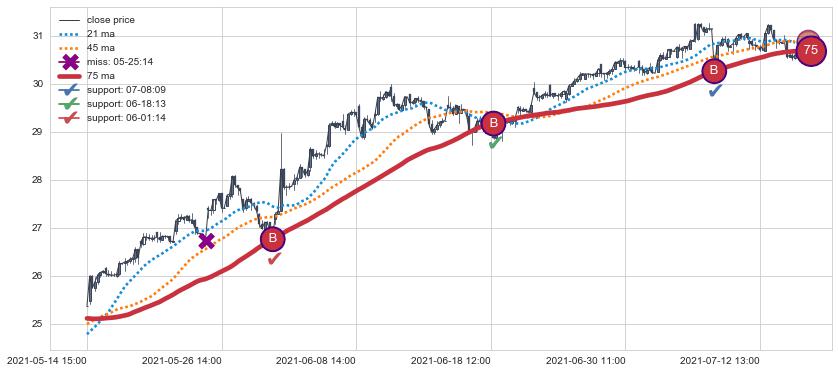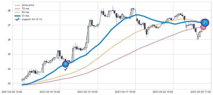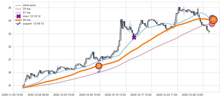 ⚄ 价格在均线获取支撑后再次向上反弹了【较短】距离, 第②买入点 支撑效果【仍需验证】