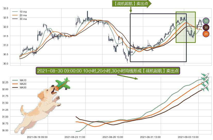 ⚀ 2021-08-20 12:00:00小时-2021-09-03 15:00:00小时显现 10小时-20小时-30小时均线 【战机起航】卖出点 看空信号,后市看跌,卖出