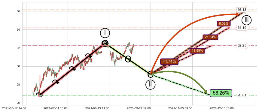 ➢ 循环浪继续向上【最低】位置(11-24:12, 32.25),匹配聚类样本比例28.48%, 可能性概率11.89%