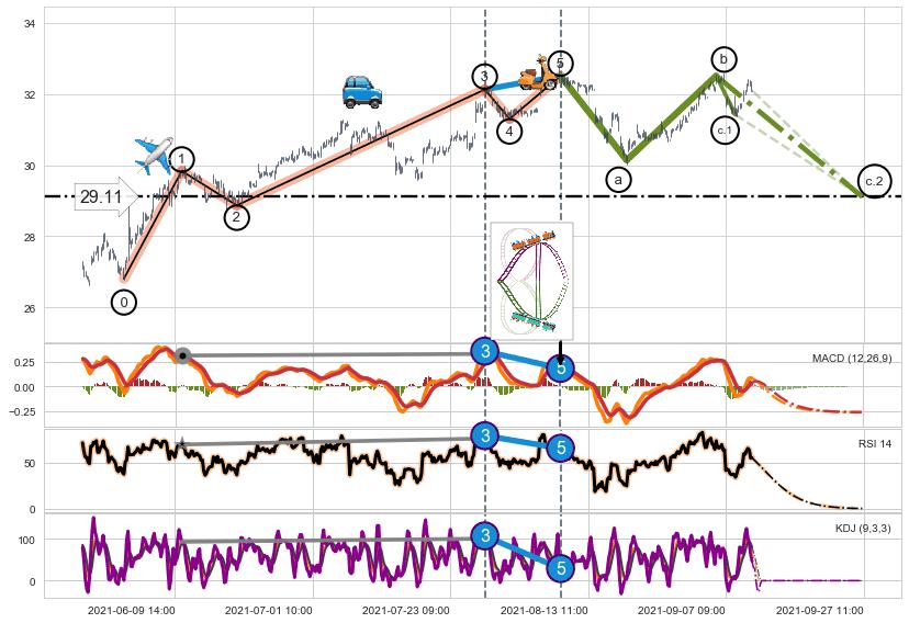➣ 1,3,5驱动浪MACD, RSI, KDJ走势都出现【常规背离】反转信号增强