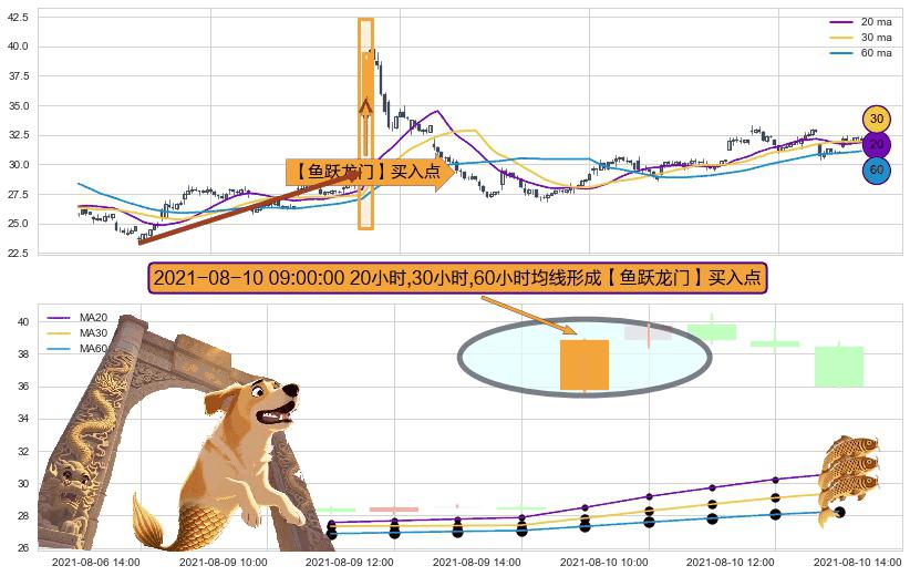 形态多维评估: ⚀ 2021-08-10 09:00:00小时显现 20小时-30小时-60小时均线 【鱼跃龙门】买入点 看多信号,后市看涨,买入