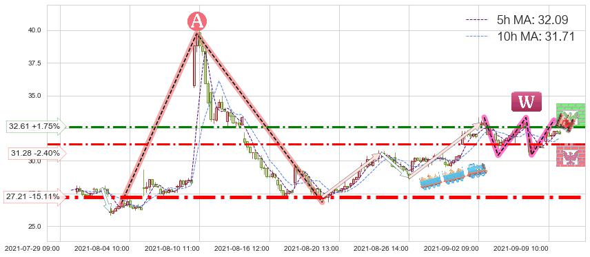 ♘ 阻力价格位32.61,可信任强度65.89%,距离最后交易2021-09-09 14:00形成的收盘价格32.05相差 +1.75%