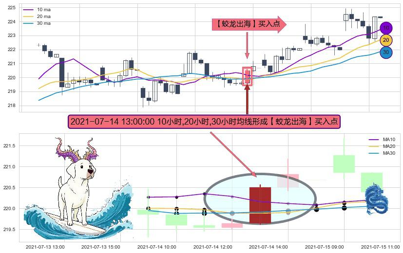 ⚀ 2021-07-14 13:00:00小时显现 10小时-20小时-30小时均线 【蛟龙出海】买入点 看多信号,后市看涨,买入
