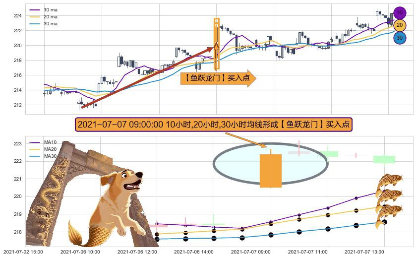 ⚀ 2021-07-07 09:00:00小时显现 10小时-20小时-30小时均线 【鱼跃龙门】买入点 看多信号,后市看涨,买入