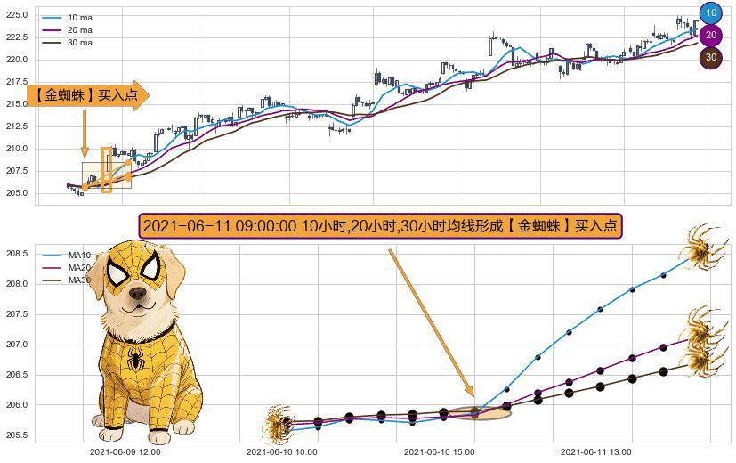⚀ 2021-06-11 09:00:00小时显现 10小时-20小时-30小时均线 【金蜘蛛】买入点 看多信号,后市看涨,买入