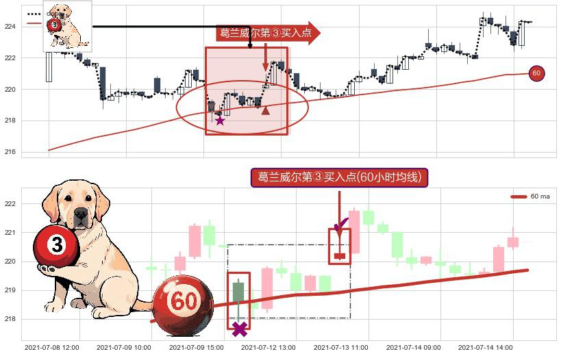 ⚀ 2021-07-13 09:00:00-小时显现 葛兰威尔均线 60小时均线 第③买入点 上升趋势的中继信号,后市看涨,买进信号