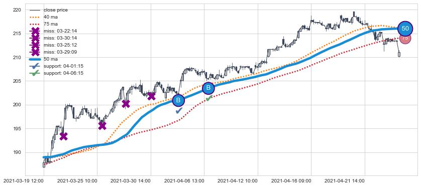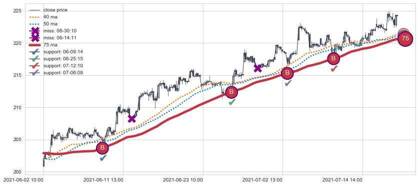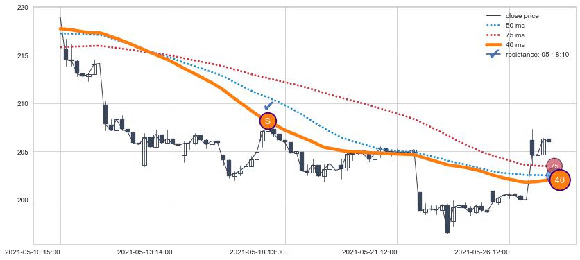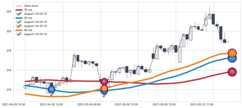 ⚂ 2021-07-14 13:00:00小时突然冒出一根大阳线,一下子顶穿三条均线且收盘价收在各条均线之上