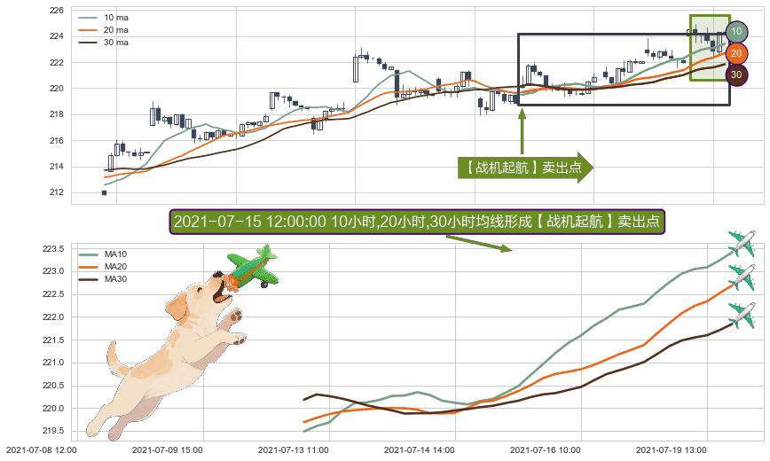 ⚀ 2021-07-13 09:00:00小时-2021-07-19 15:00:00小时显现 10小时-20小时-30小时均线 【战机起航】卖出点 看空信号,后市看跌,卖出