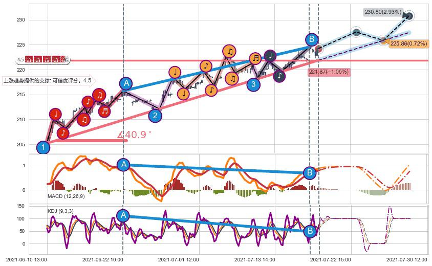 ➣ 预测:2021-07-28 09:00,【试探支撑】稳定目前上涨趋势的前提下,预测价格:225.86