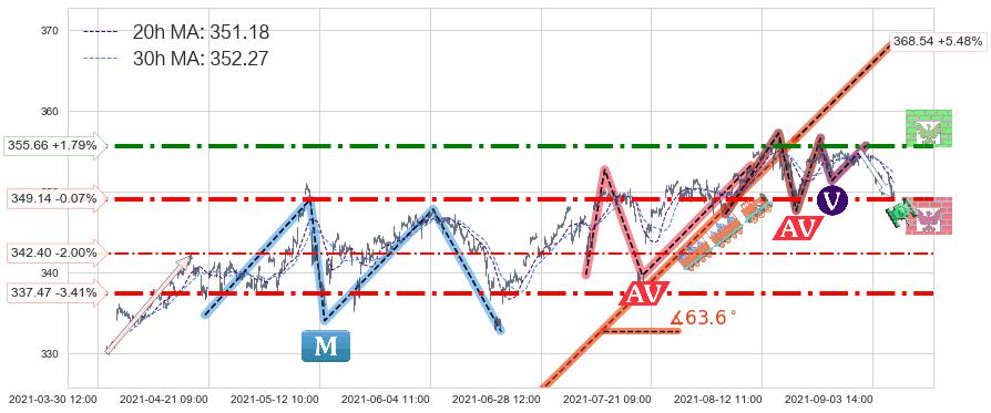 ♘ 阻力价格位355.66,可信任强度76.02%,距离最后交易2021-09-09 14:00形成的收盘价格349.40相差 +1.79%