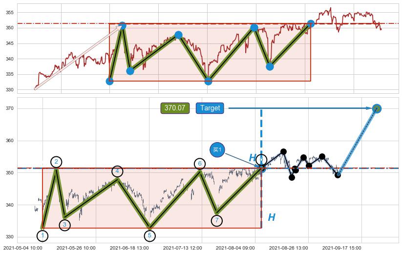➢ 【买1】: 激进型 买点 →(08-06:09: 351.43 )形成突破上涨矩形整理【整理】形态