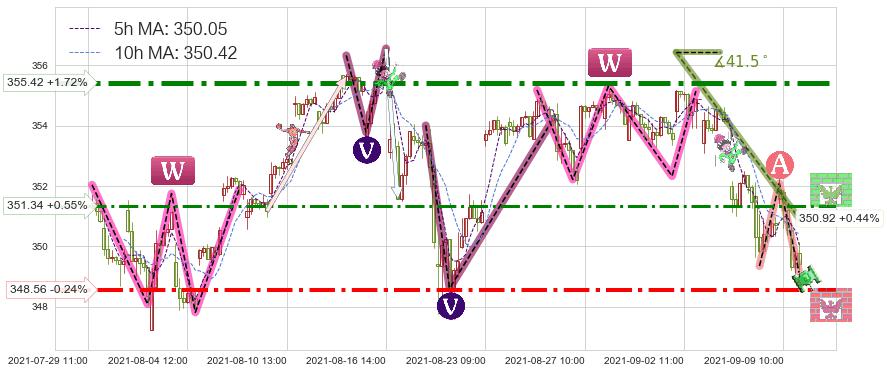 ➣ 预测:2021-09-13 09:00,【试探阻力】稳定目前下跌趋势的前提下,预测价格:349.32