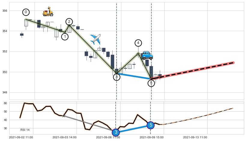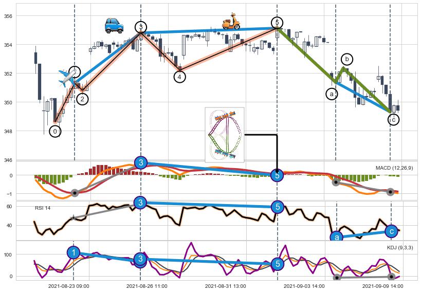 ➢ 1,3,5驱动浪MACD, RSI, KDJ走势都出现【常规背离】反转信号增强