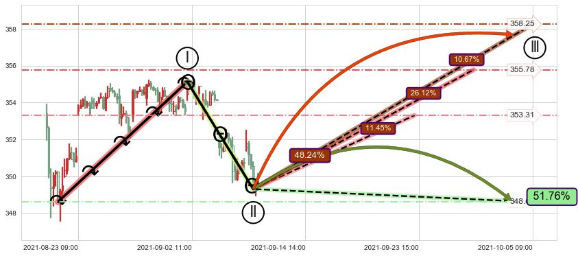 ➢ 循环浪继续向上【最高】位置(10-05:09, 358.25),匹配聚类样本比例22.12%, 可能性概率10.67%