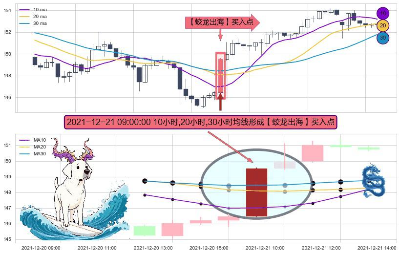⚀ 2021-12-21 09:00:00小时显现 10小时-20小时-30小时均线 【蛟龙出海】买入点 看多信号,后市看涨,买入