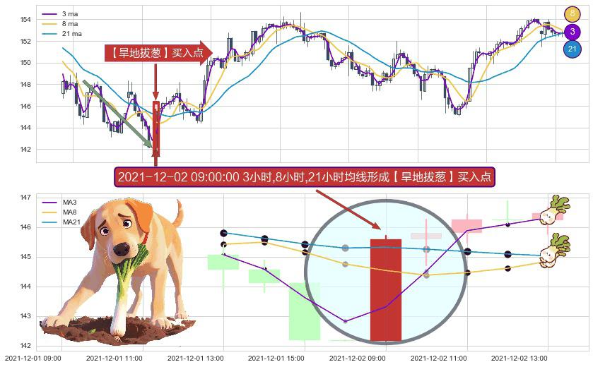 ⚀ 2021-12-02 09:00:00小时显现 3小时-8小时-21小时均线 【旱地拔葱】买入点 看多信号,后市看涨,买入