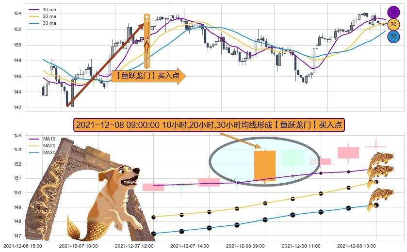 ⚀ 2021-12-08 09:00:00小时显现 10小时-20小时-30小时均线 【鱼跃龙门】买入点 看多信号,后市看涨,买入