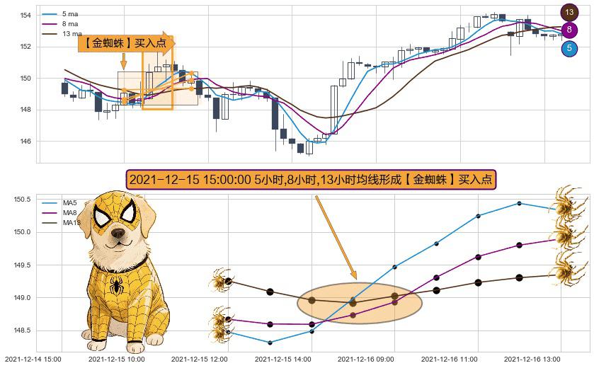 ⚀ 2021-12-15 15:00:00小时显现 5小时-8小时-13小时均线 【金蜘蛛】买入点 看多信号,后市看涨,买入