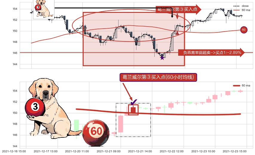⚀ 2021-12-21 11:00:00-小时显现 葛兰威尔均线 60小时均线 第③买入点 上升趋势的中继信号,后市看涨,买进信号