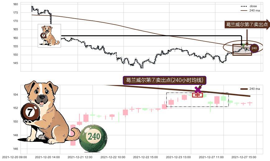 ⚀ 2021-12-23 14:00:00-小时显现 葛兰威尔均线 240小时均线 第⑦卖出点 下降趋势的中继信号,后市看跌,卖出信号