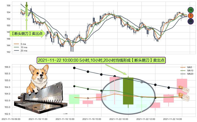 ⚀ 2021-11-22 10:00:00小时显现 5小时-10小时-20小时均线 【断头铡刀】卖出点 看空信号,后市看跌,卖出