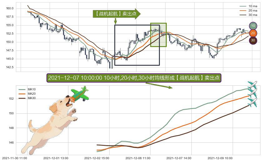 ⚀ 2021-12-02 12:00:00小时-2021-12-09 14:00:00小时显现 10小时-20小时-30小时均线 【战机起航】卖出点 看空信号,后市看跌,卖出