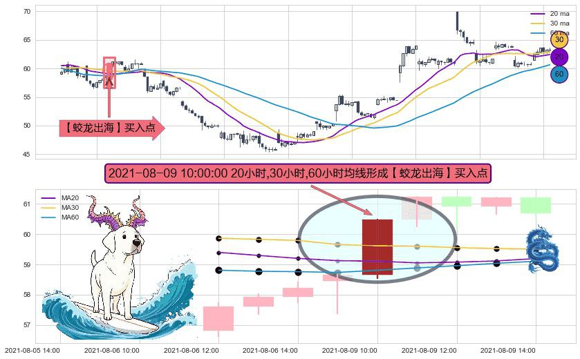 形态多维评估: ⚀ 2021-08-09 10:00:00小时显现 20小时-30小时-60小时均线 【蛟龙出海】买入点 看多信号,后市看涨,买入