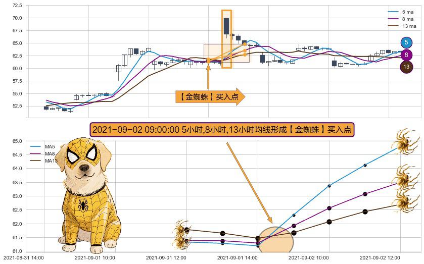 形态多维评估: ⚀ 2021-09-02 09:00:00小时显现 5小时-8小时-13小时均线 【金蜘蛛】买入点 看多信号,后市看涨,买入