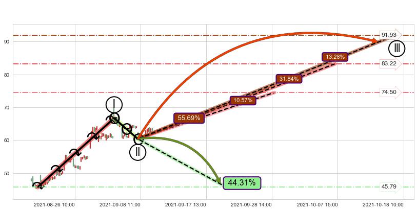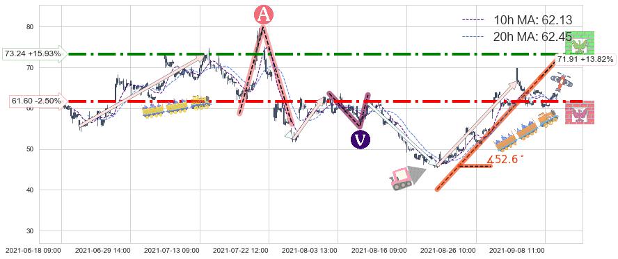 ♘ 阻力价格位73.24,可信任强度71.95%,距离最后交易2021-09-09 14:00形成的收盘价格63.17相差 +15.93%