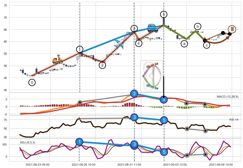 从2021-08-19 13:00至2021-09-09 14:00,共包含88个小时,阶段股价上涨34.52%,阶段股价变动位移路程比: 1 : 3