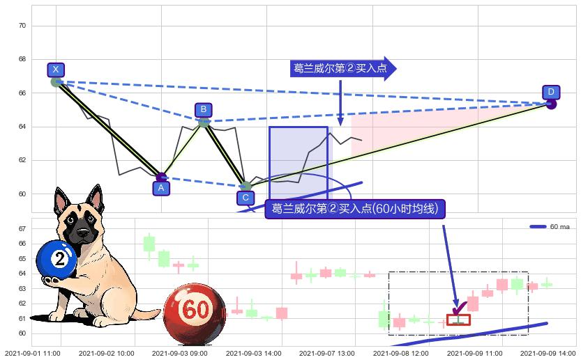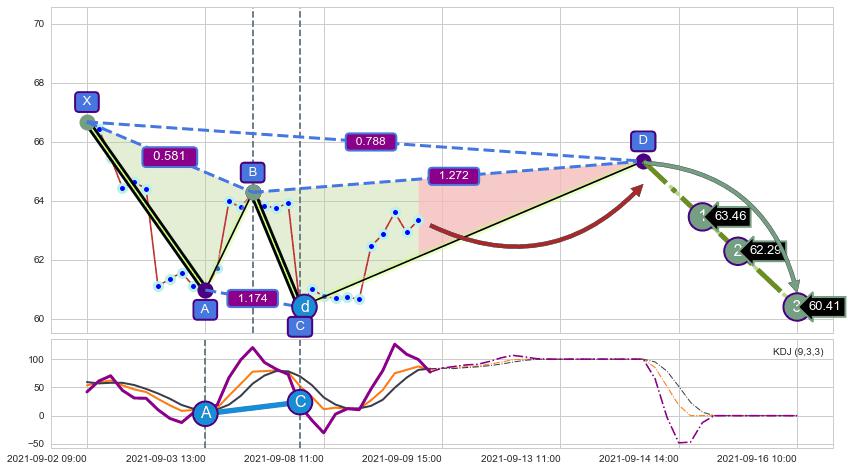 ➣ D点拟合预测价格65.35,距离最后交易收盘价格63.17相差 +3.44%