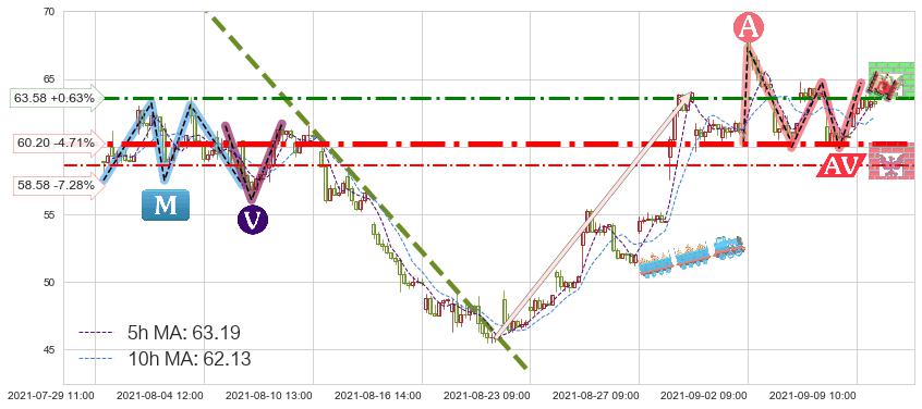 ♘ 支撑价格位60.20,可信任强度92.41%,距离最后交易2021-09-09 14:00形成的收盘价格63.17相差 -4.71%
