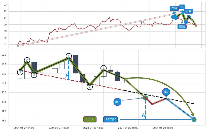 从2020-12-28 16:00至2021-01-25 09:00,共包含138个小时,阶段股价下跌-1.26%,阶段股价变动位移路程比: 1 : 115