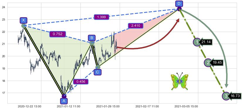 ➣ 未完成【蝴蝶】形态起点X: 12-14:16, 已到达C点: 01-20:15, 预测最终D点: 02-25:15, 共390交易小时