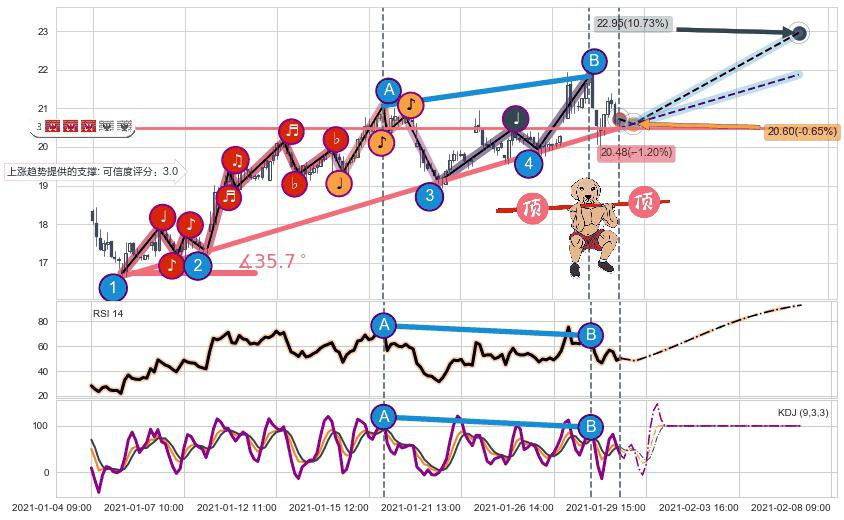 ♘ 支撑价格位20.63,可信任强度73.70%,距离最后交易2021-01-28 16:00形成的收盘价格20.73相差 -0.51%