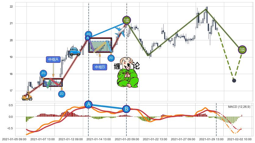 ➣ 【已完成】缠论 起点:01-05:09,完成第1中枢A,完成第2中枢B,终点:01-15:16,缠论共72交易小时