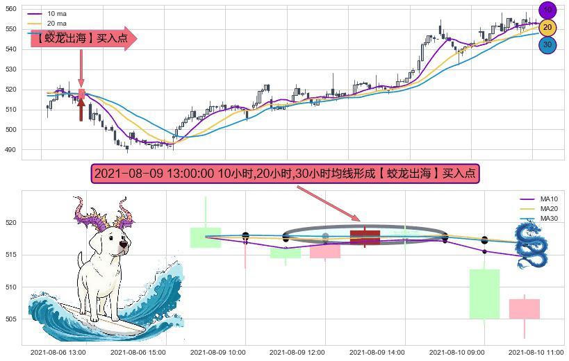 ⚀ 2021-08-09 13:00:00小时显现 10小时-20小时-30小时均线 【蛟龙出海】买入点 看多信号,后市看涨,买入