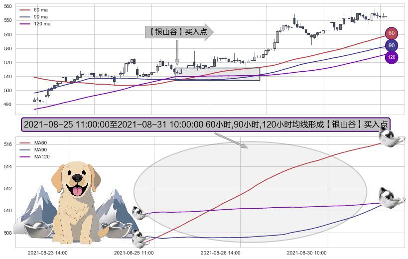 ⚀ 2021-08-25 12:00:00-小时至2021-08-31 10:00:00-小时显现 60小时-90小时-120小时均线 【银山谷】买入点 看多信号,后市看涨,买入