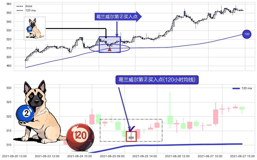 ⚀ 2021-08-25 10:00:00-小时显现 葛兰威尔均线 120小时均线 第②买入点 上升趋势的中继信号,后市看涨,买进信号