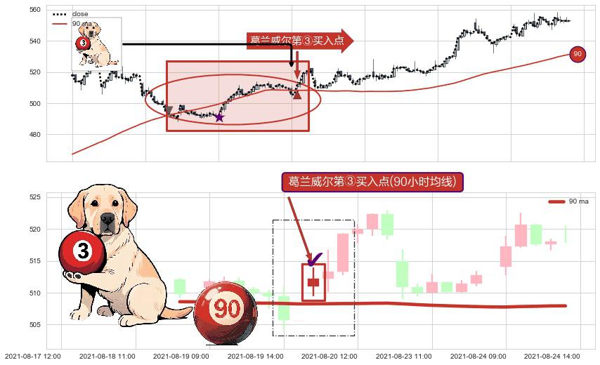 ⚀ 2021-08-20 09:00:00-小时显现 葛兰威尔均线 90小时均线 第③买入点 上升趋势的中继信号,后市看涨,买进信号
