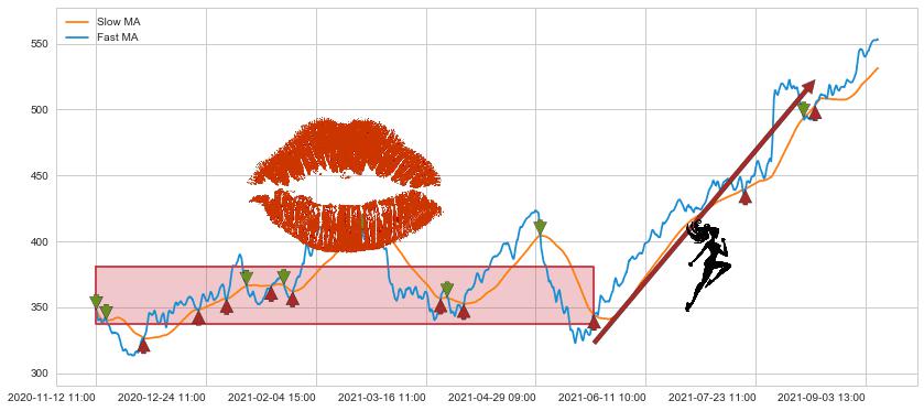 ⚅ 买点向上突破均线后,价格走势很纠结,不断在均线周围试探,有再次下探破位均线的可能