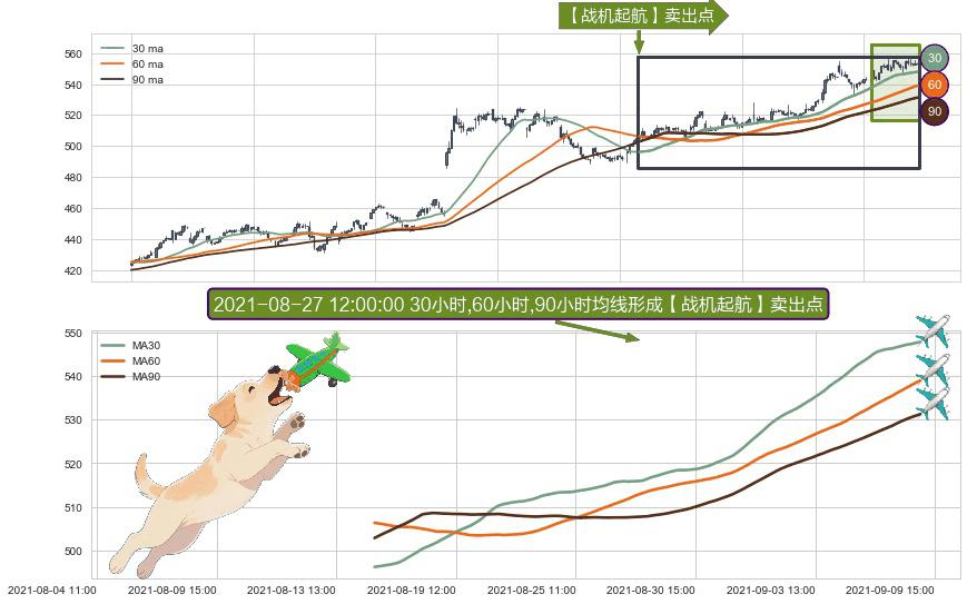 ⚀ 2021-08-16 14:00:00小时-2021-09-09 15:00:00小时显现 30小时-60小时-90小时均线 【战机起航】卖出点 看空信号,后市看跌,卖出